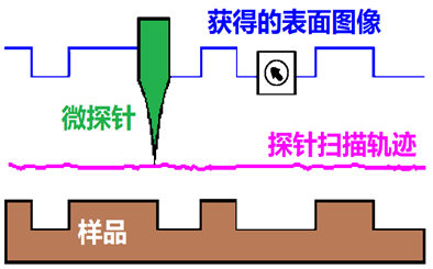 其测试过程是利用一根尖端半径在几个纳米的极微细探针(微探针),在极靠近样品表面处对样品表面的形貌或特性(如:电、磁、力、光等特性)进行逐行逐点探测。由此,可清楚得到原子等级解析度的样品表面形貌与特性。