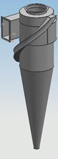 气体以10~25m/s的速度通过进气口(一般采用15~20m/s),产生的离心力分离出小到5μm的颗粒及雾沫。离心力越大分离效果越好,其径向速度与气流速度的平方成正比。