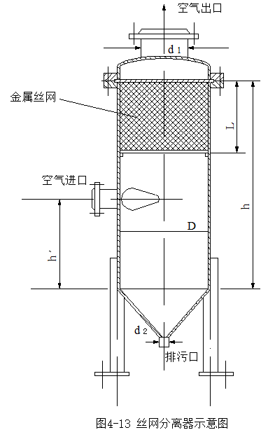 (2)结构:高径比通常为2~2.5;贮气罐上应装安全阀;底部应装排污口;罐内放置铁丝网除雾器则更为理想 。