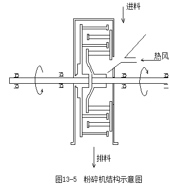 (3)带粉碎机型:物料和热风一起进入粉粹机内,由于粉碎机内具有高速回旋的鼠笼式转子,能把物料和热风高速搅拌,在高速搅拌过程中,物料实现粉粹,所以热容量系数极高。