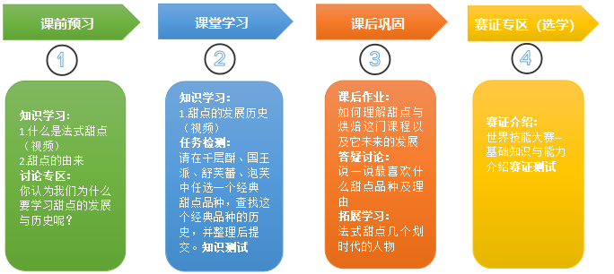 3.情感态度与价值观目标:通过学习,认识甜点发展的历史,热爱甜点制作,学习历史中甜点匠人的钻研精神。