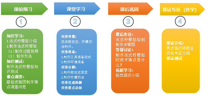 3.情感态度与价值观目标:通过自主学习制作法式柠檬挞,树立自主钻研、精益求精的职业精神。
