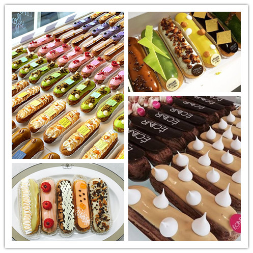 闪电泡芙的发展:巴黎正在掀起的流行就是这闪电泡芙啦。由于它上面的一层翻糖有很高的可塑性,甚至可以在上面绘画,比起马卡龙有更多的艺术发挥空间,成了甜点界的新宠。上次巴黎甜点店大哥之一的Fauchon推出的闪电泡芙周,有各种各样美丽的泡芙,甚至有表面绘着浮世绘或者蒙娜丽莎的。