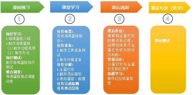 3.情感态度与价值观目标:通过自主学习制作海绵蛋糕,树立自主钻研、精益求精的职业精神。