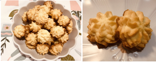 含水量越高,延展性越好。所以,审视你的曲奇面团,是很干还是很湿?太湿的面团花纹会消失,太干的面团挤出花纹会很费劲,两者都是不可取的。