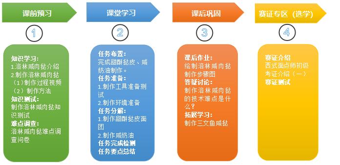 2.过程与方法目标:通过在线学习平台在规定时间内进行自主学习;在教师指导下,通过课程安排完成实操练习,提交任务检测。