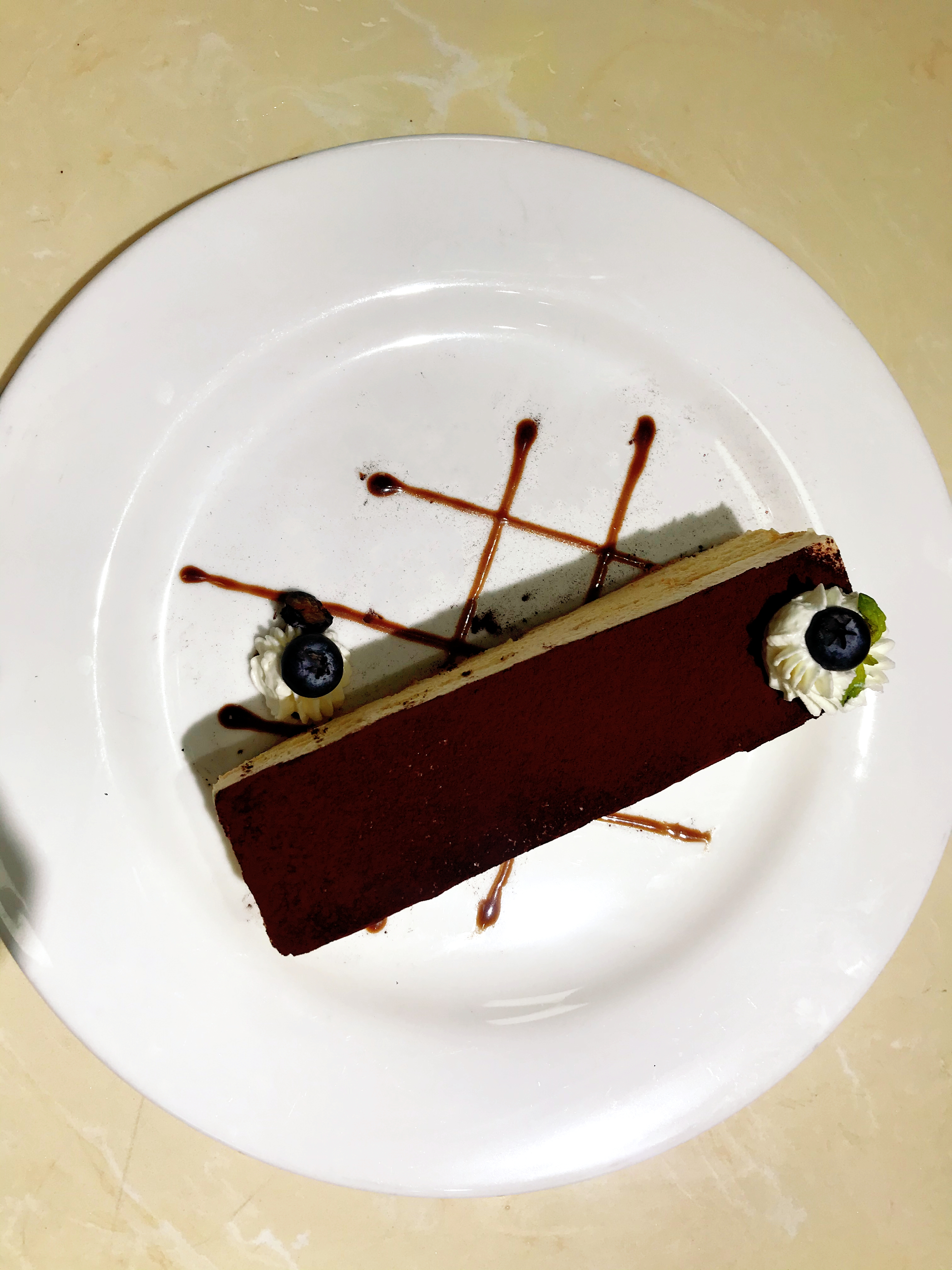 (1)提拉米苏质地细腻,糕体呈现乳黄色,表面光滑无颗粒