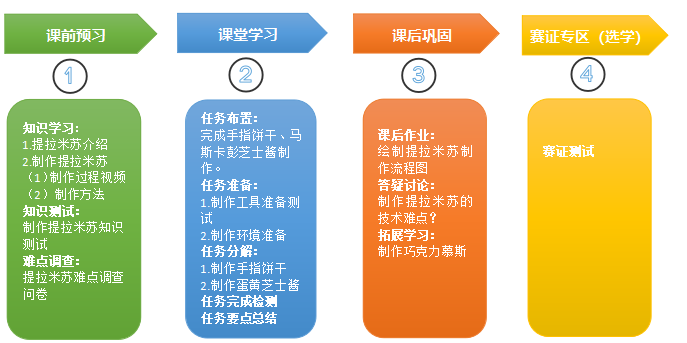 3.情感态度与价值观目标:通过自主学习制作提拉米苏,树立自主钻研、精益求精的职业精神。