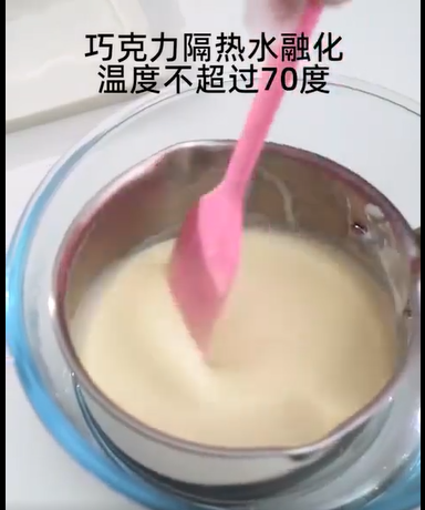 2.巧克力需隔水融化,水温应控制在70度左右,温度过高,白巧克力会水油分离,无法使用。