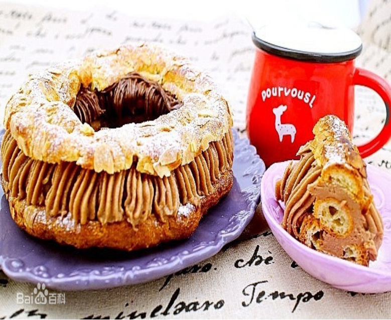 布雷斯特泡芙,又叫巴黎车轮泡芙,它的诞生和一次自行车赛紧密相连,在1891年的一场巴黎与布雷斯特之间的环城自行车赛后,大家也为了纪念这场自行车赛,同时也是为了吃点好吃的,甜点师们就设计了这样一款自行车轮状的圆环形甜点,布雷斯特泡芙也就由此诞.