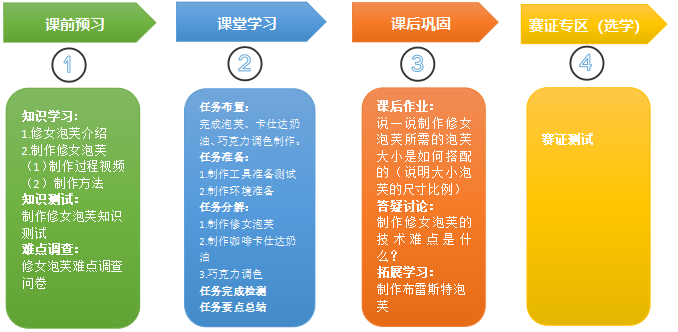 3.情感态度与价值观目标:通过自主学习制作修女泡芙,树立自主钻研、精益求精的职业精神。