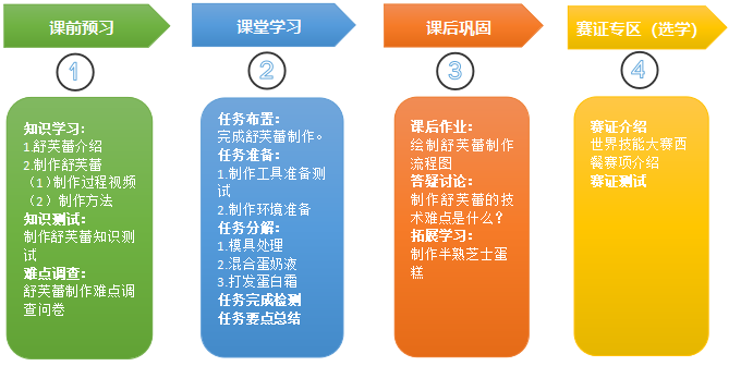 3.情感态度与价值观目标:通过自主学习制作舒芙蕾,树立自主钻研、精益求精的职业精神。