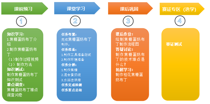 3.情感态度与价值观目标:通过自主学习制作焦糖蛋奶布丁,树立自主钻研、精益求精的职业精神。