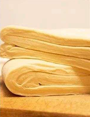 (4)千层酥最后擀制厚度不能超过4MM,酥皮过厚,烤的时候,就不容易膨胀。
