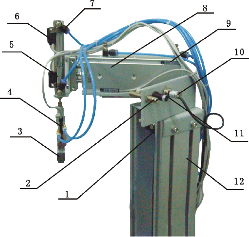7-节流阀 8-伸缩气缸 9-磁性开关 10-左右限位传感 11-缓冲阀 12-安装支架