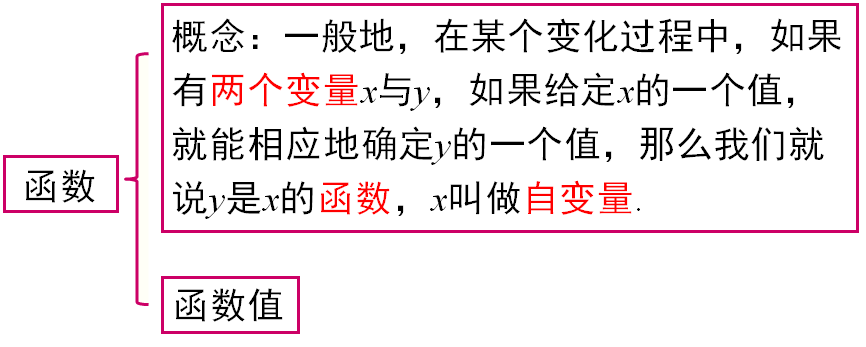 一般地,在某个变化过程中,如果有两个变量x与y,如果给定x的一个值,就能相应地确定y的一个值,那么我们就说y是x的函数,x叫做自变量。