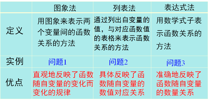 2. 会用描点法画简单的函数图象,了解函数的三种表示方法。
