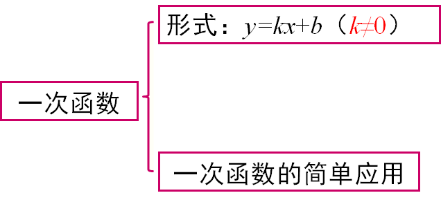 一般地,形如y=kx+b(k,b是常数,k≠0)的函数,叫做一次函数。