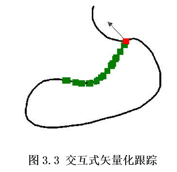 沿着栅格数据线的中央进行跟踪,将其转化为矢量线数据,屏幕上即显示出追踪的踪迹。每跟踪一段遇到交叉地方就会停下来,让用户选择下一步跟踪的方向和路径当一条线跟踪完毕后,即可以终止矢量化,此时可以开始下一条线的跟踪。