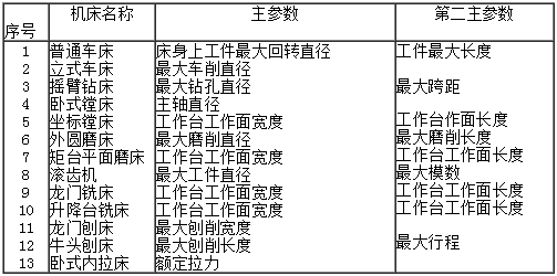 通常在机床的使用说明书中均详细列有该机床的主要技术参数(技术规格),供选择和使用机床时参考。