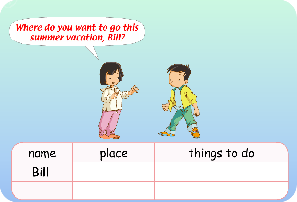 2. 能够结合个人情况,写出下列问句的答句:Where do you want to go? What do you want to do? 并能做到书写正确、规范。