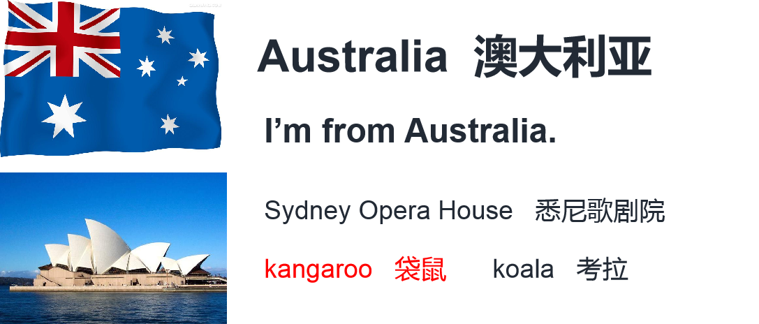 1. 认识 Canada, Australia, the UK, the USA, China 等单词,并尝试借助拼读规律记忆单词。