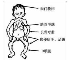 当维生素D缺乏时,小儿出现佝偻病;成人出现软骨病,出现骨骼疼痛、软弱无力等症状;老年人常因维生素D缺乏而出现骨质疏松。