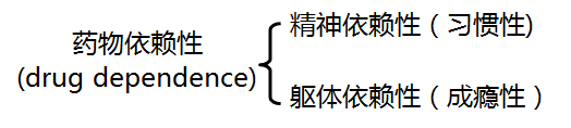 依赖性是指连续应用某些药物后,用药者表现出一种强迫性连续或定期应用该药的行为和其他反应。药物依赖性可分为两种类型: