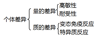 有少数人会出现与多数人在性质(质)和强度(量)明显差异的反应。产生个体差异的原因很多,其中作用强度上的差异,主要与药物药动学过程存在差异有关;而作用性质上的差异,主要与遗传因素有关。