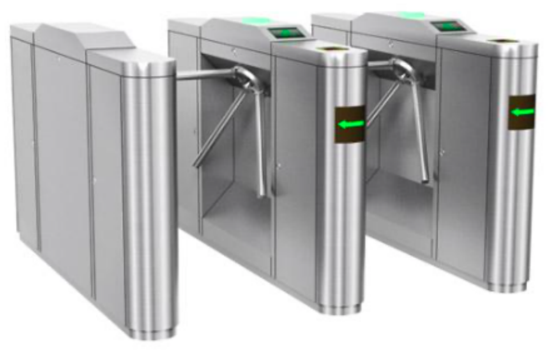 扇形门装置是另一种得到广泛应用的检票机阻挡装置。扇形门装置由扇形门、机械控制结构和控制板组成。