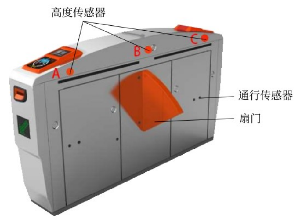 自动检票机的侧面主要有通行传感器、高度传感器和阻挡装置组成