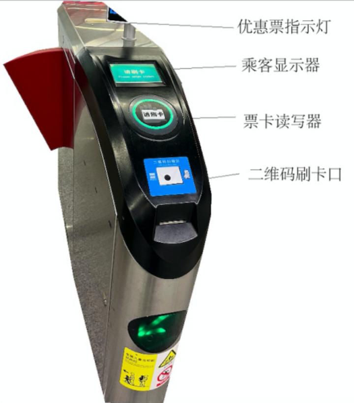自动检票机的上面主要包括二维码扫描口、票卡读写器、乘客显示器和优惠票指示灯几部分组成,部分闸机还有面部识别装置。