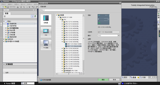 3.选择PLC类型:S7-1516,订购号:6SE7516-3AN02-0AB0