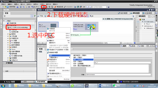 18 .选中PLC,下载硬件组态