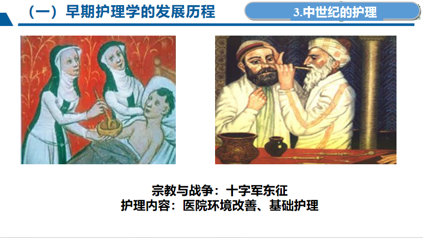 在中世纪,僧侣和尼姑将毕生精力用于照顾和服务穷人和病人。寺院成为教育、医疗和护理的场所。