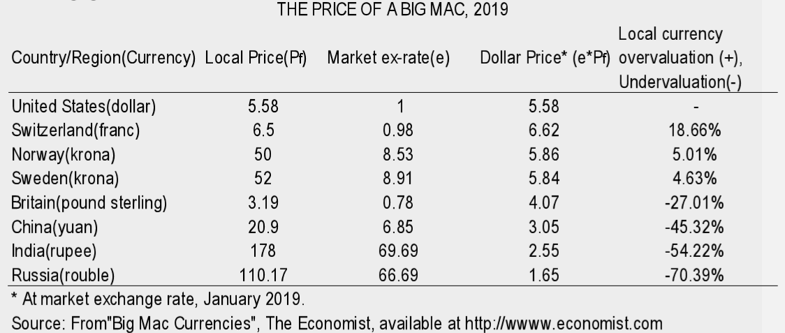 It is based on the the law of one price. According to the law of one price, a Big Mac hamburger should cost the same dollars wherever it is purchased in the world, suggesting that the market ex-rate is the true equilibrium rate.