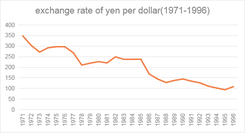 In 1980s, Japan experienced Persistent huge surplus on currenct account balance; as a result, Japan's stock of foreign assets increased rapaidly, become the largest creditor in the world, which inevitably pushed up the exchange value of Yen against dollar.