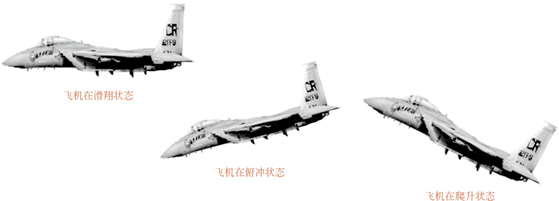 在爬升状态中,总的支持力是机翼的升力和发动机推力的合力。重力可以分解为两个分量:一个与升力反向;另一个与推力反向,也就是与阻力同向。结果就是四力的平衡状态下被旋转了一个爬升角。极限的情况就是垂直爬升,这时重力和阻力的方向与推力相反。这种飞行的例子常见于直升机,但是常规的固定翼飞行器,如果有足够的推力,它也是进行垂直爬升动作。在这种状态下,机翼的升力肯定为零,而且它的迎角也必须为零,这样才能不产生升力。因此,很明显的事实就是,想要爬升得更陡和更快就必须有强大的推力,机翼的作用是次要的,推力必须能够克服重力和阻力的合力。