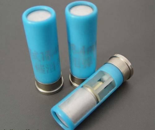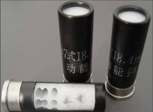 能弹”字样,顶部有两道凸起横杠,为手触摸标志。B构造:内装8粒直径8毫米的硬橡胶弹丸。C适用范围:是一种非致命性弹药,以弹头的所携带的动能来打击特定目标,适用于50米内震慑和制服特定的单个或群体目标。D作用效果:15米内直射