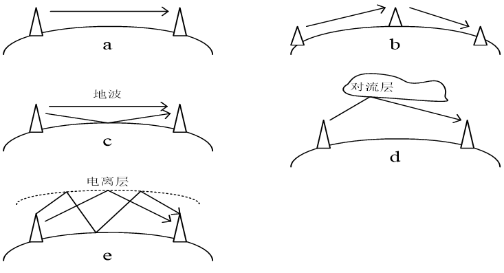 电磁波可以通过多种方式从发射天线传播到接收天线,地波、对流层反射波、电离层波等。直达波是发射机同接收机间最简单的方式,也称为视距波,直达波沿直线传播。