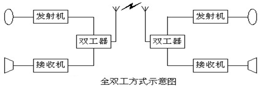 通信双方的一方使用双频双工方式,同时收发,另一方则采用双频单工方式,发信时按下送话开关。