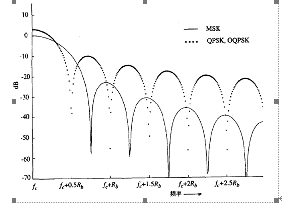 MSK信号的旁瓣比QPSK信号低。主瓣比QPSK信号的主瓣宽,因此在以主瓣带宽作比较时,MSK的带宽效率比相移键控技术要低。