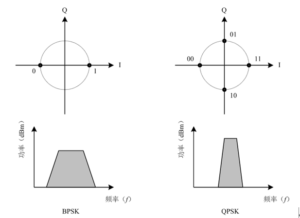 QPSK的比特误码率与BPSK基本相同,但是在同样的带宽内可以传输的数据速率是BPSK的两倍,因此与BPSK相比,QPSK在同样的功率效率情况下,带宽效率提高了两倍。与BPSK类似,QPSK也可以通过差分编码来进行非相干解调。
