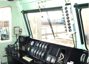 1—调车司机控制器;2—空气制动阀;3—速度表;4—电空制动控制器;5—主台气表;6—主司机按键开关;7—主台电表;8—主台显示器及开关;9—主司机控制器;10—副台电表;