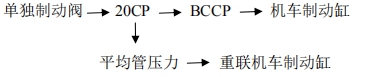 20CP失效时,16CP将响应单独制动手柄的指令,控制本机车制动缸的压力。对于重联车,将不存在平均管压力。控制关系如下: