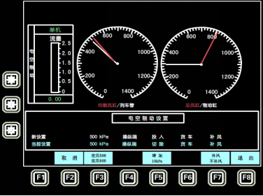 选择F3“电空制动”键并检查均衡风缸的压力,压力值应为500kPa或600kPa。