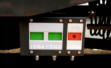 (9)确认停放指示器为红色,制动指示器为绿色,如图5-5-14所示,手动缓解停放制动单元,如图5-5-15所示(右1轴、3轴; 左4轴、6轴处各一个共四个);