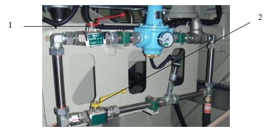 1-调压阀止阀(客车供风塞门);2-调压阀旁通阀(机车重联供风塞门900kpa)。