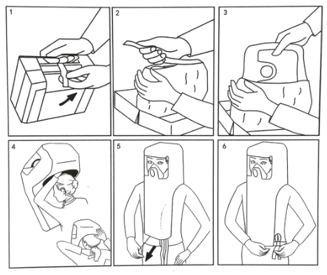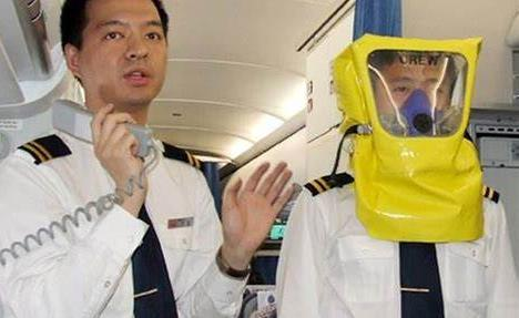 防护式呼吸装置适用于排烟和封闭空间的灭火,佩戴后起到保护呼吸、提高可视度作用。当客舱封闭区域失火和有浓烟时,使用它可以保护灭火者的眼睛和呼吸道不受烟火侵害。