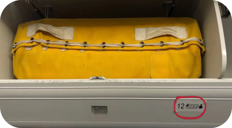 救生船存放在行李架上,为了使目标明显、便于寻找,船体由两层橙黄色涂胶绢绸制成。充气系统由气瓶、充气活门、充气软管和引射泵构成。